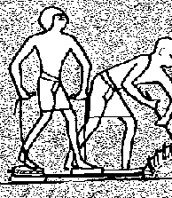you can see a foot bellows which is operated by hero A-shi-ta-ka and women.