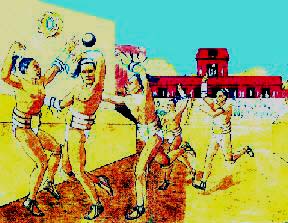 ゴムが豊富に採れる、中南米ではゴムボールを使った遊びが古くから盛んに行われていました。 祭りに行われた球技の起源ははっきりしませんが、紀元前から始まり、マヤの時代(250〜900年) に発展しました。アステカ時代(14世紀) には『トラチトリ』と呼ばれ、太陽を象徴するボールをあやつる競技は祭りの儀式として 行われました。球技場は都市の中心部、祭祀(さいし)センターに設けられています。