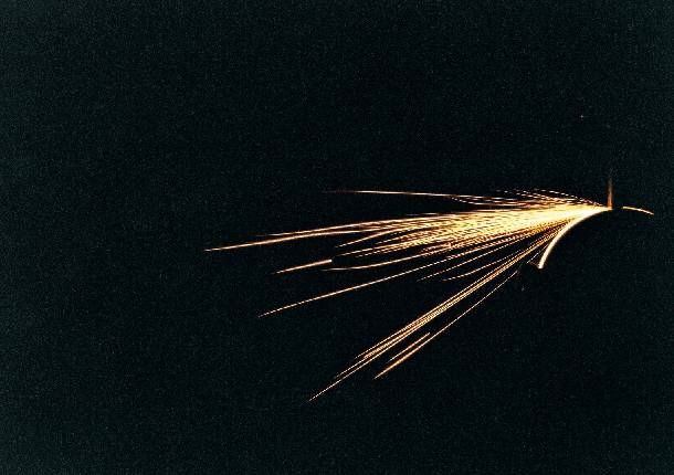1.火花全体像 ・SUS304と非常に類似している。とげは殆ど認められない。 また、モリブデンのやり先は認められない。 2.全体像(拡大) ・SUS304と非常に類似している。とげは殆ど認められない。 また、モリブデンのやり先は認められない。 3.全体像(拡大) ・SUS304と非常に類似している。とげは殆ど認められない。 4.先端像(拡大) ・SUS304と非常に類似している。とげは殆ど認められない。 5.先端像(拡大) ・SUS304と非常に類似している。とげは殆ど認められない。 |