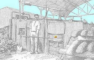 今から30年以上前のことです。くさりづくりの仕事に入った私は鎖について色々なことを知りたかったのですが、 残念なことに誰も教えてくれませんでした。『見て覚え!!』これが当時の職人気質だったのです。 あるとき、イギリスの工業規格BS(British Standard)の中にくさりや関連金具が詳しく書かれていることを知り、 辞書を片手に一生懸命読みました。そのとき、どうしても判らなかったことばが ロートアイアン(Wrought Iron = 錬鉄)でした。 現在の高炉による、製鉄法では1500度以上の高温で、鉄鉱石を溶かし炭素をたくさん含んだ鉄を作り、 酸素を吹き込み、炭素を燃やして脱炭して鋼にします。 1700年代では炭素をたくさん含んだ銑鉄から製錬するのは非常に困難だったのです。 イギリスでは、木炭や木材を燃やし、その熱を炉の天井に反射させて、銑鉄を溶解する反射炉が開発されました。 しかし、温度が低くく鋼の不純物を除去するための精練炉として十分には使えませんでした。 そこでヘンリー・コート(英)は1783年、反射炉で使う燃料を石炭とし、炉内温度を高くしました。 さらに溶融銑鉄を炉に付けた小窓から鉄棒を入れ、その鉄棒で溶融銑鉄をこねて精練する 『パドル炉精練法(Puddling process)』を開発しました。溶融銑鉄に含まれる炭素、珪素などの不純物は、 炉内の空気中の酸素により酸化されます。この反応は溶融銑鉄表面だけで生じるので、溶融銑鉄を鉄棒でかき混ぜ、 溶融銑鉄全体で不純物を酸化させ、スラグとして除去することを可能にしました。 この方法により製造された鉄を『錬鉄(Wrought iron)』と呼びます。錬鉄は炭素含有量が0.02〜0.05%と、 非常に少ない軟鉄です。しかし、精練が完全ではないため、非金属介在物も含まれていました。 錬鉄を加熱、圧延することにより丸棒、角棒、薄板などを作る技術は1785年に開発され、 生産性が飛躍的に向上しました。当時の鉄道のレールは加熱した錬鉄を2個の円錐ロールの棒圧延機を使い製作したものです。 当時の鉄道の発展は、鉄鋼消費量の空前の増加をもたらしました。 |