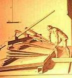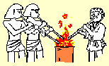 それは鉄を加工する高温を、維持するのには重要な道具だったのです。 ふいごの発達は、炉の改良とあいまって金属加工技術を向上させてゆきます。 『もののけ姫』には主人公アシタカが女たちと交代して踏む、踏みふいごが登場しました。 初期の鍛冶屋は、ふいごと炉、ハンマーと火箸があれば出来たのです。もちろん腕は必要でしたが。 ふいご祭り (由来) (01.01.98) 聖徳太子絵伝に出てくる踏みふいご (20.10.08) 鞴(ふいご)の歴史 (01.06.07) 『ふいご』の話を改訂しました。 (01.01.2012) ☆ 小型の『箱ふいご』をお持ちの方はお譲りください。『鉄のふしぎ博物館』で展示したいと考えています。 |