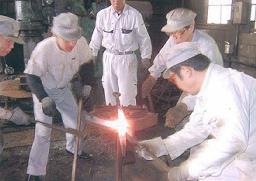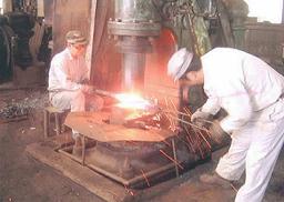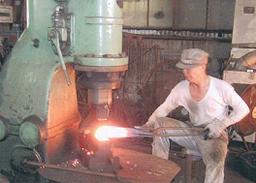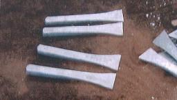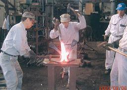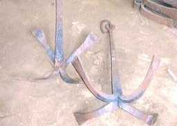 今も昔と変わらない方法かな?ハンマーがエヤーハンマーに変わっただけかな? ここでは、現在作られている四爪アンカーの製造工程を完成品から逆に追っかけました。