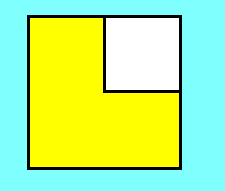 黄色に塗られた、正方形の3/4の面積を、