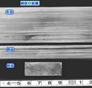 錬鉄(れんてつ=Wrote Iron):鉄滓を含む海綿鉄やパドル炉で製錬した鉄塊を水車ハンマーなどで