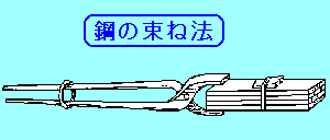 当時は、圧延が出来なかったので、右下のように薄い粗鋼を重ね・束ねて水車ハンマーなどで鍛えたのでしょう。