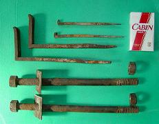 釘とカンヌキ止めの金具、樋受け金具と共に6本のボルトが出てきました。釘とカンヌキ止めの金具は和鉄(たたら製鉄で作られた鉄)製でしたが、ボルトは材料が何か判明しません。おそらく、明治時代末期から昭和初期までの間に修理をしたときに使われたものでしょう。手作りのボルトとナットは1組ごとに作られ、形状はそれぞれ異なり互換性がありません。ボルトの直径は16〜17φmm、ナットの穴径は14.4〜15.2φmmとまちまちでした。このボルトやナットを作った鍛冶屋さんの苦労が目に浮かぶようです。