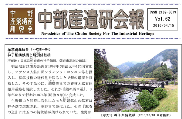 会報編集を担当されているので、 表紙を飾る「産業遺産紹介」の原稿に