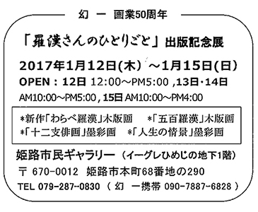 今回は 『羅漢さんのひとりごと』 出版記念展です。