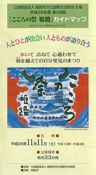 『こころの祭り』 姫路市文化国際交流財団が主催して上記の祭りを開催しています ことしは第26回になります。『鉄のふしぎ博物館』は初登場 11月11日(土) 午前10時午後4時まで ぜひ おいでください。 『鉄のふしぎ博物館』は ガイドブック No.31 (P16) に記載されています。 歩いて 訪ねて 心通わせて