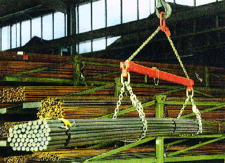 重量物を吊り上げる時、スリングチェーンが使われます。一本足のもの 二本足のもの、吊られる物の重さや形状、又、その使い方によって種々の スリングチェーンが使われています。 同じような吊具として、ワイヤーロープ・繊維ロープ・繊維ベルトで 出来たものなど色々ありますが、チェーンの吊具は一番過酷な条件の ところで使われています。 例えば、高温、耐酸性、耐候性などの使用環境などにおいて。