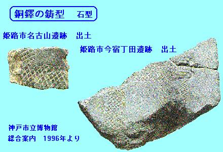 姫路市の名古山、住居跡から銅鐸の、石の鋳型の一部が1960年(昭和35年)に
