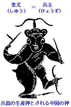 銅や鉄の精錬技術を有する、大陸系の渡来人が信奉した神。兵器の生産神として古代中国の神話に登場。