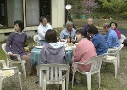 準備が整っていました。初対面ですが皆は思い思いに飲み、食べ、しゃべり、食後は切り出しナイフづくり。