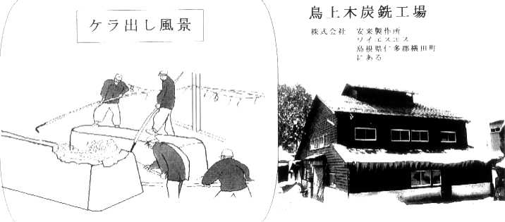 れ玉鋼の上に残った、炭火が燃え盛るのが見えて来ました。炭火を脇に除け、真っ赤なケ