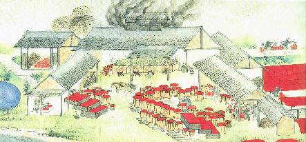 3.『焼キ』を水洗碾き臼室(すいせんひきうすしつ)へ運び水槽に入れ攪拌し上水
