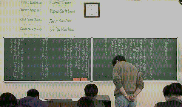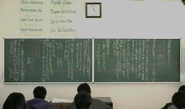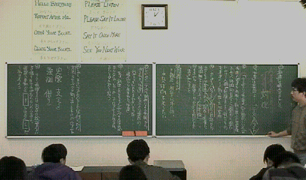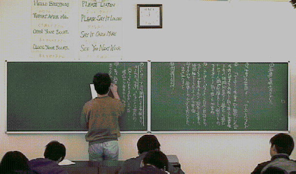 余った時間で「古文」問題を解いています。ここでやっと板書の半分を消しました。