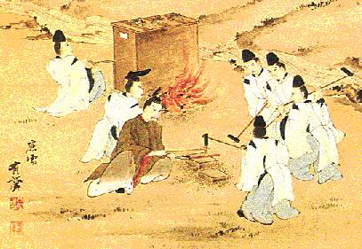 Long long ago, on 8th in November of some year, a blacksmith closed his shop and was drinking with visitor. Then, someone like a runaway, came into shop and asked to shelter him. The blacksmith let go him into Fuigo and lied sake, lamplight, foods on Fuigo and let hung around Fuigo a thick, twisted, straw rope with stripes of white paper and made a pretence of being at their prayers. Then, a pursuing party came into shop as they said "hand over a runaway to us". They looked everywhere of shop, but they could not find him. At last when they wanted to look into the Fuigo, The blacksmith saved the situation by saying "As today is Fuigo festival, please do it tomorrow". When the blacksmith look into Fuigo after the pursuing party went out of shop, he could not find the runaway who should be in Fuigo.