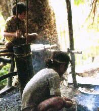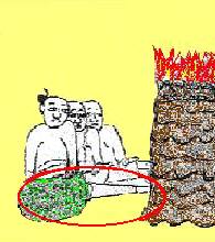 you can see a foot bellows which is operated by hero A-shi-ta-ka and women.