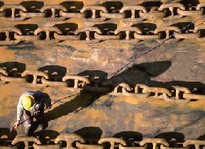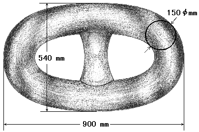 The weight of one link is 270 Kg, and 90 feet is 12 tons.