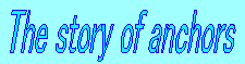 Stone anchor The battle of Dannoura Stone anchor of Gen battlship The Kuki water army The Kitamae-fune The Nipponmaru,The Kaiwomaru The Tohyamaru A viking A big voyage age Ten-Ko-Kai-Butsu Anchor-making The first anchor chain The anchors of the Titanic Normal type anchor Anchors variety A forged anchor The anchor of the sailboat A digression about I-ka-riA right photograph borrowed the winning work of in photo contest 1997 named "life with the iron" of the Japanese steel league auspices.