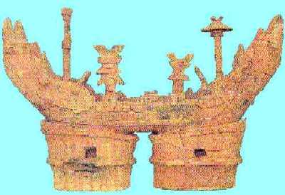 船形埴輪は、大阪市平野区の長原高廻り2号墳から出土したこれまで最大のもの (全長128.7センチ、重要文化財)をはじめ全国で計29点が出土しているが、 今回のような飾りはなかった。奈良県天理市の東殿塚古墳から出土した埴輪などに、 飾られた船が描かれていただけだった。