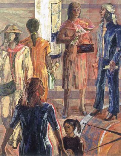 略歴 武蔵野美術短期大学卒 ラ・イン会会員 日洋会所属 右の絵は 第16回 日洋展 (2002) の入選作 ウーマン ライフ です。 童彩会について 昭和45年発足 自己のもつ感性を引き出し 描く感動 造る感動を育む場として幼児から 小中学生を対象とした児童絵画教室。 国際交流児童画展等出品。