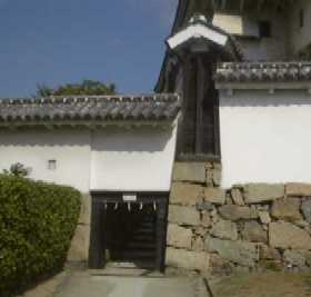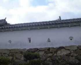 They are slits in the tower and corridor walls. A rectangular one is called "Arrow Sama" .Photo of various slits on the wall