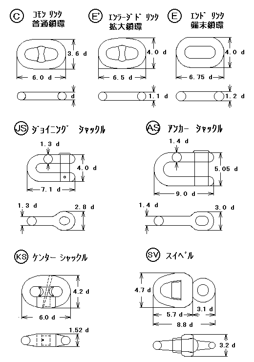 アンカー チェーンの部品類の寸法は、その呼び径(d φmm)によって決定されます。